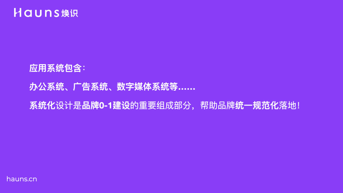 Hauns煥識是一家創(chuàng)意策略思考導(dǎo)入型的品牌成長咨詢公司,我們擁有寬闊的國際視野,以創(chuàng)意策略性思維導(dǎo)入品牌內(nèi)部,通過調(diào)研分析、策略定位、品牌設(shè)計(jì)等專業(yè)核心能力,構(gòu)建由內(nèi)而外完整的品牌體系,用專業(yè)的服務(wù)為品牌注入活力,幫助您的企業(yè)實(shí)現(xiàn)真正地品牌成長,煥然一新品牌識別形象!